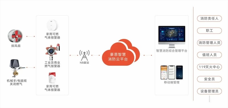 Haoen combustible gas alarm system can real-time monitoring of natural gas, liquefied petroleum gas, hydrogen, isobutane, carbon monoxide and other combustible gas leakage, and on-site linkage control and remote remind users, to achieve rapid treatment of fire hazards.