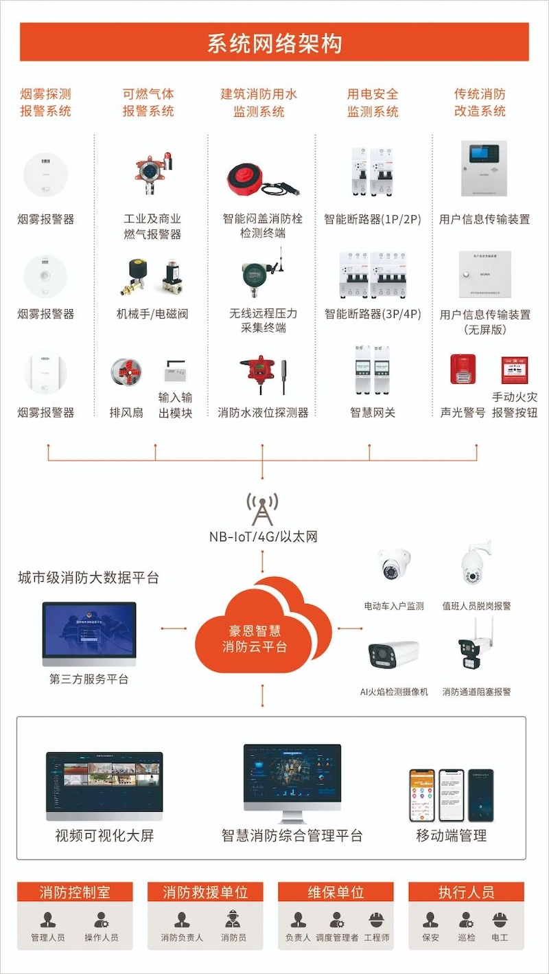 Haoen is committed to the research and application of wireless technology and IoT platforms, using hardware that is easy to deploy, low power consumption, and easy to maintain, as well as cloud management platform software that provides clear and powerful data visualization. It connects various fire protection subsystems, breaks geographical limitations, and lays a solid foundation for a comprehensive intelligent fire protection solution.