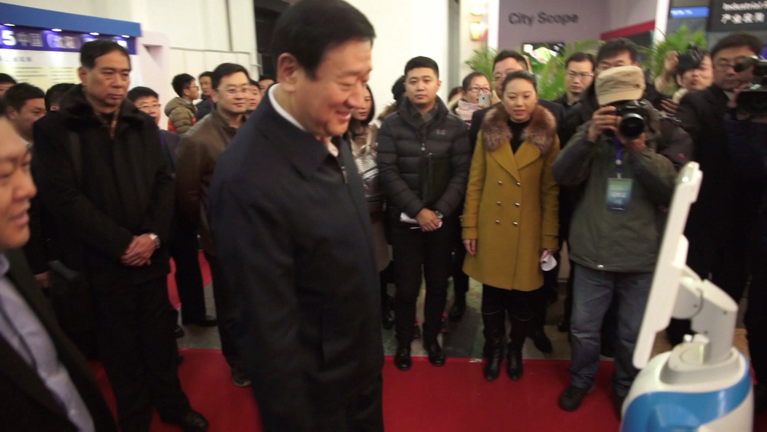 3日上午9點(diǎn),沈陽市市長潘利國、沈北新區(qū)書記龐洪波、市政府副秘書長肖楓、市政府副秘書長王曉林、市經(jīng)信委主任隋莉、市大數(shù)據(jù)局局長陳大為、市服務(wù)業(yè)委副主任張利、蒲河新城管委會常務(wù)副主任周鵬舉、沈北新區(qū)副區(qū)長張文國一行在中安科股份有限公司技術(shù)總監(jiān)兼研發(fā)中心總經(jīng)理龔灼、中安科副總裁兼東北、華北、華中區(qū)域中心總經(jīng)理郭鵬、中安科總裁助理兼市場發(fā)展中心總經(jīng)理王穎、中安科股份東北區(qū)中心總經(jīng)理高偉等人的陪同下參觀了中安科展示區(qū)域,詳細(xì)了解了中安科涉及城市綜合管理平臺、城市公共安全、智慧建筑、智慧醫(yī)療(醫(yī)療+養(yǎng)老)、智慧教育、智慧交通六大領(lǐng)域的智慧城市整體解決方案。沈陽市市長潘利國還與中安消智能服務(wù)型“替身”機(jī)器人進(jìn)行了互動(dòng)。
