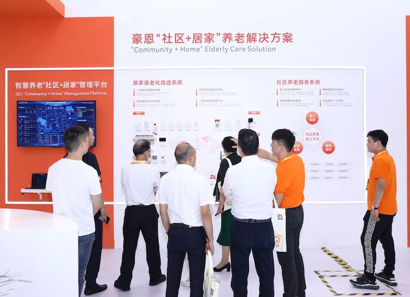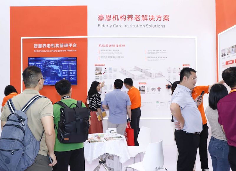 在4號(hào)館4D60展位上,豪恩橙色展臺(tái)獨(dú)樹(shù)一幟,現(xiàn)場(chǎng)展示了智慧養(yǎng)老綜合管理平臺(tái)、社區(qū)+居家養(yǎng)老解決方案以及機(jī)構(gòu)養(yǎng)老解決方案三大展區(qū),吸引了行業(yè)內(nèi)眾多企業(yè)與專家參觀。