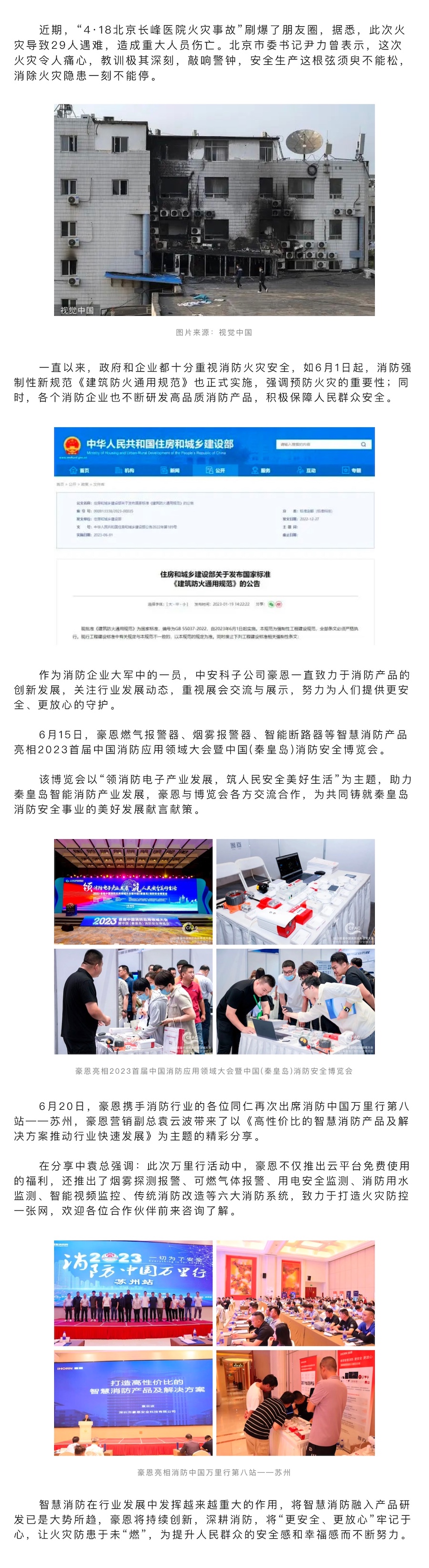 讓火災(zāi)防范于未“燃”,中安科子公司豪恩“智慧消防”守護萬家安全
