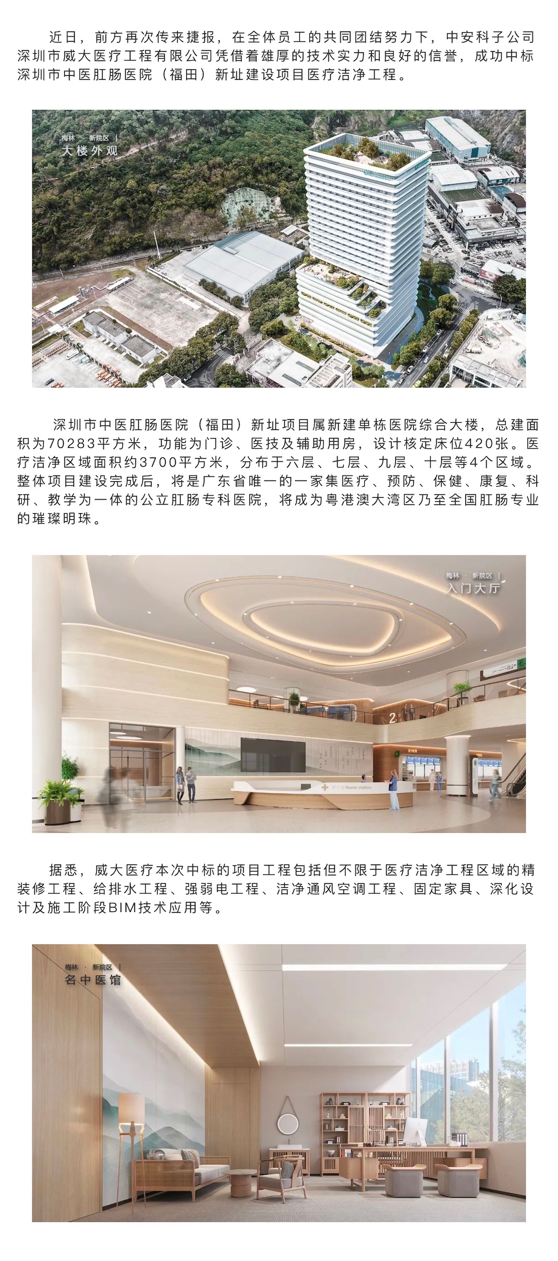 捷報(bào)頻傳|中安科子公司威大醫(yī)療中標(biāo)深圳市中醫(yī)肛腸醫(yī)院(福田)新址建設(shè)項(xiàng)目醫(yī)療潔凈工程