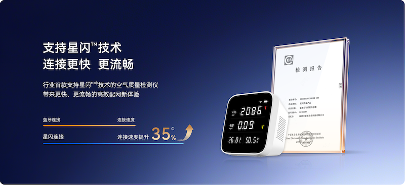 作為業(yè)內(nèi)首款支持星閃連接技術(shù)的空氣質(zhì)量檢測儀,產(chǎn)品在連接速度、穩(wěn)定性與功耗方面實(shí)現(xiàn)跨越式提升,為用戶帶來更流暢配網(wǎng)體驗(yàn)。