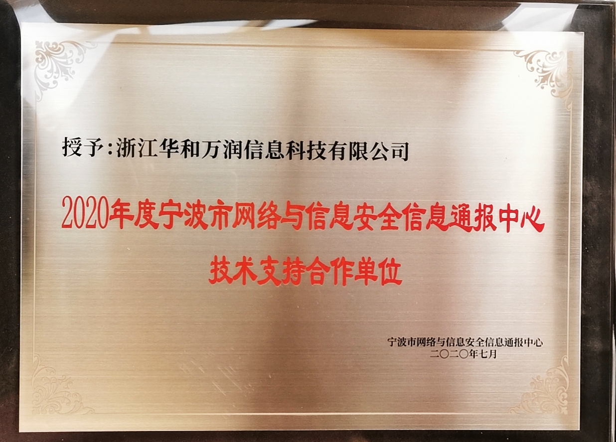 近日,由中共寧波市委網(wǎng)信辦、寧波市大數(shù)據(jù)發(fā)展管理局指導(dǎo),寧波市計(jì)算機(jī)信息網(wǎng)絡(luò)安全協(xié)會(huì)主辦的《2020 寧波市信息網(wǎng)絡(luò)安全高峰論壇暨寧波市計(jì)算機(jī)信息網(wǎng)絡(luò)安全協(xié)會(huì)全體會(huì)員大會(huì)》,在寧波成功舉辦。中安科股份成員公司 — 浙江華和萬(wàn)潤(rùn)信息科技有限公司(以下簡(jiǎn)稱(chēng)“華和萬(wàn)潤(rùn)”)憑借其在網(wǎng)絡(luò)安全領(lǐng)域的優(yōu)異表現(xiàn),榮獲「2020年度寧波市網(wǎng)絡(luò)與信息安全信息通報(bào)中心技術(shù)支持合作單位」、「2019 - 2020 協(xié)會(huì)突出貢獻(xiàn)獎(jiǎng)」殊榮。