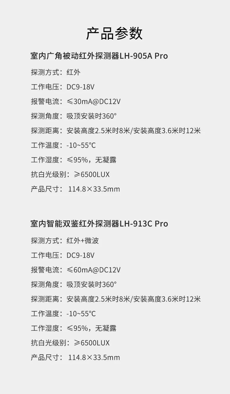 室內(nèi)智能雙鑒紅外探測(cè)器 LH-913C Pro