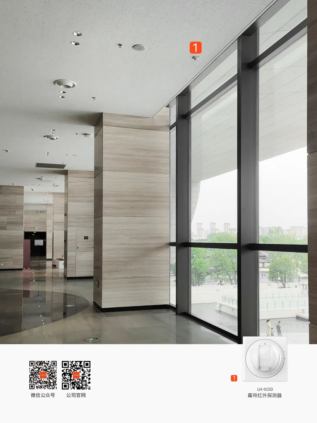 在各大展廳的門窗、出入口、外周邊通道等公共區(qū)域,安裝了多個室內幕簾和廣角被動紅外探測器,采用豪恩新一代菲涅爾透鏡與全新單片機算法,實現(xiàn)精準、快速探測,并且自動適應博物館遮擋、噴膠、人群往來等各種復雜環(huán)境,有效防止誤報漏報。