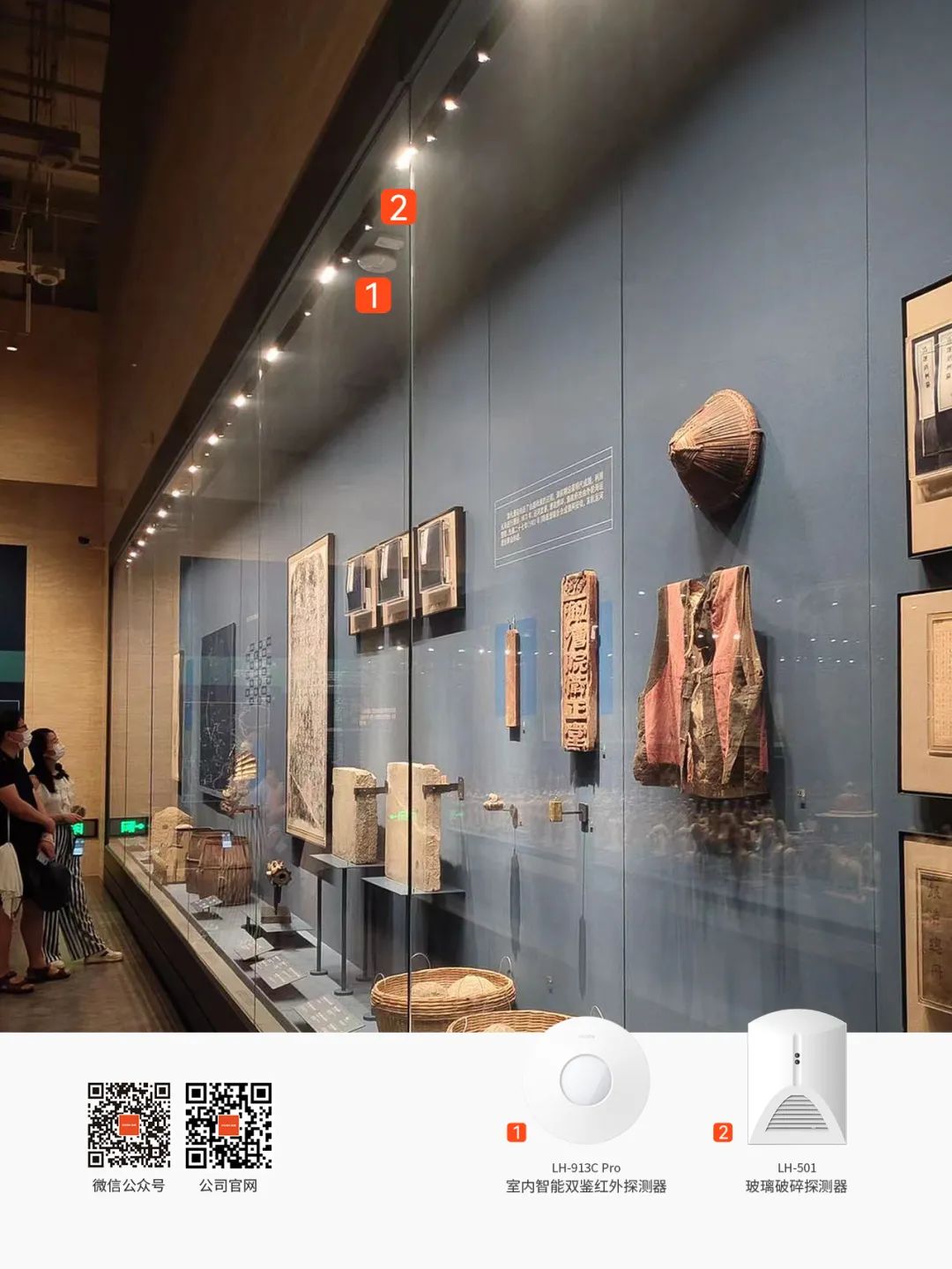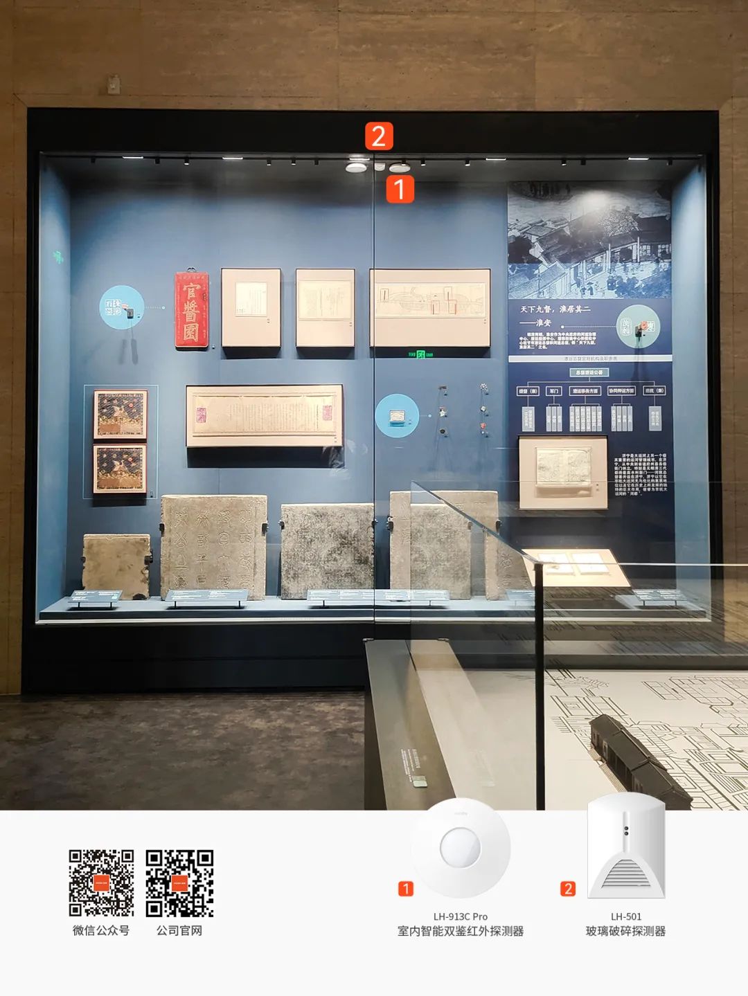 而在每個展柜內部,豪恩也安裝了玻璃破碎探測器,及時感知對展柜的惡意敲擊、爆破以及高低溫攻擊等破壞行為,為珍貴的文物筑起第二道保護墻。
