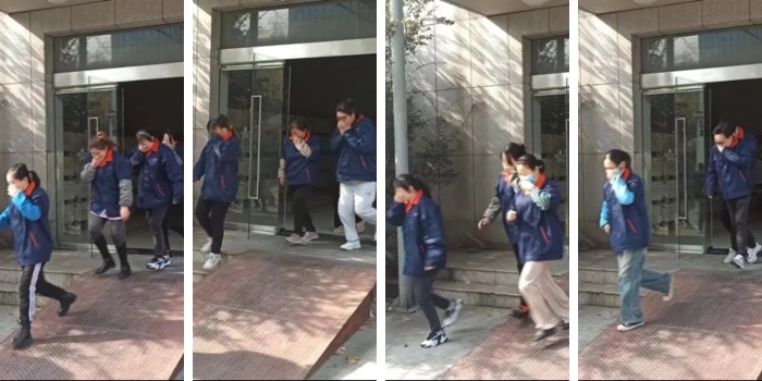 本次應(yīng)急演練模擬辦公樓內(nèi)突發(fā)火情的場景,“起火”后,樓內(nèi)員工按照安全出口標(biāo)志指引,俯身掩鼻快速有序地撤離到安全地帶。