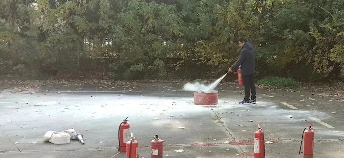 為進一步提高對初期火災(zāi)撲救的實際操作能力、強化實戰(zhàn)結(jié)果。在安全培訓(xùn)人員的指導(dǎo)下,現(xiàn)場實操使用滅火器進行了滅火演練。