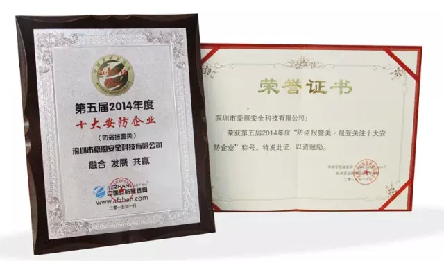 2015年3月16日,由中國(guó)安防展覽網(wǎng)主辦,備受業(yè)界關(guān)注的“第五屆2014年度最受關(guān)注十大安防企業(yè)頒獎(jiǎng)盛典暨2015年安防新技術(shù)創(chuàng)新及成果研討會(huì)”在杭州召開(kāi),豪恩安防獲得“最受關(guān)注防盜報(bào)警類(lèi)十大安防企業(yè)”榮譽(yù)稱(chēng)號(hào)。