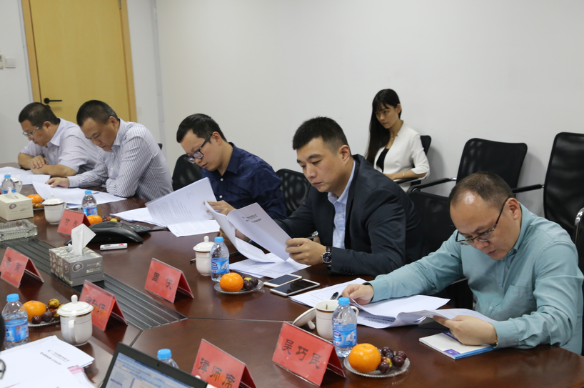 董事會、監(jiān)事會會議現場 董事長涂國身(左二);董事:周俠(右二)、吳巧民(右一)、郝軍(左一);董事會秘書付欣(右三)