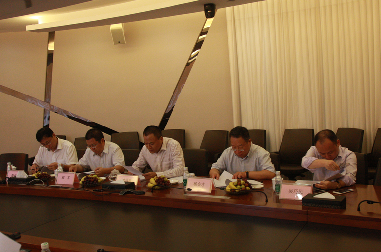 董事會會議現(xiàn)場,董事長涂國身(左三);董事:吳巧民(右一)、楊金才(右二)、秦永軍(左一)、郝軍(左二)