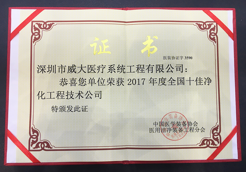 在稍后的頒獎典禮中,深圳威大憑借眾多標(biāo)桿項目的實施經(jīng)驗及豐富的系統(tǒng)集成能力,連續(xù)三年摘得“全國十佳凈化工程技術(shù)公司”的榮譽,并被主辦方授予“醫(yī)用潔凈裝備工程分會理事單位”的稱號。成立至今已有25年的深圳威大,已然成為國內(nèi)綠色智慧醫(yī)院、醫(yī)療凈化系統(tǒng)的代表企業(yè)之一,系國家《醫(yī)用潔凈室應(yīng)用規(guī)范》標(biāo)準(zhǔn)的起草單位、深圳市政府重點扶持的高新技術(shù)企業(yè),擁有多項專利和知識產(chǎn)權(quán),其自主研發(fā)生產(chǎn)的“手術(shù)室控制系統(tǒng)”,已廣泛應(yīng)用于全國各類公共衛(wèi)生及醫(yī)療機構(gòu)。
