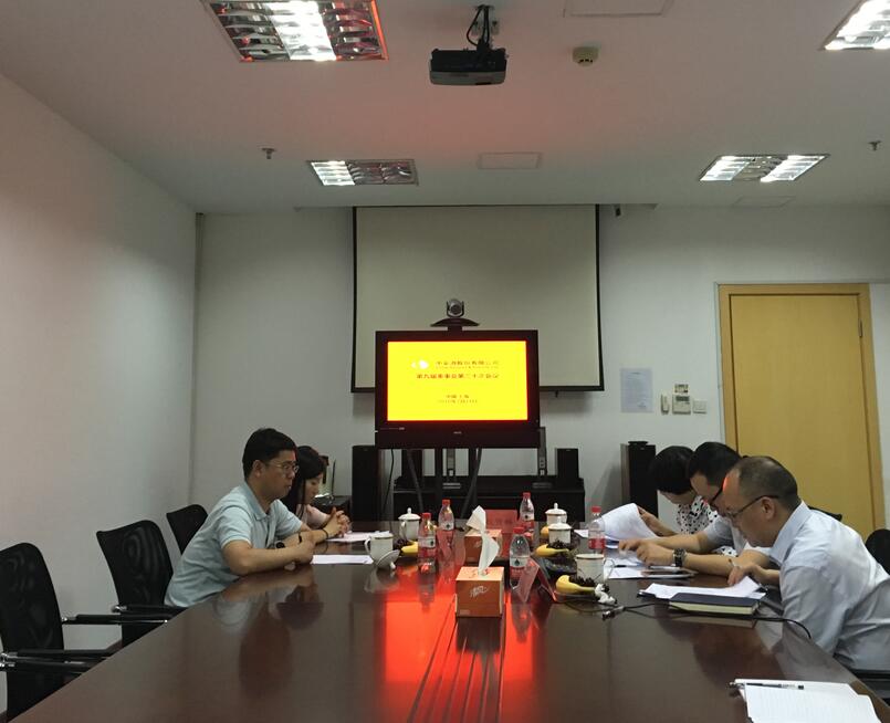 董事會(huì)會(huì)議現(xiàn)場(chǎng) 右排右起:董事:吳巧民(右三)、付欣(右二);左排左起:監(jiān)事:吳展新(左二)、陳亞南(左一);董事會(huì)秘書(shū):王蕾(右一)