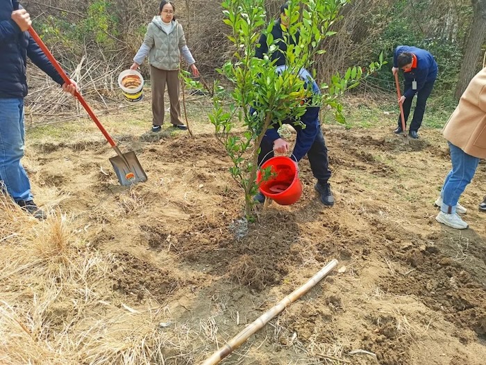 在植樹現(xiàn)場(chǎng),大家干勁十足,分工協(xié)作,有的揮鍬鏟土、有的細(xì)心栽種、有的培土澆水……各個(gè)環(huán)節(jié)有條不紊,默契配合。
