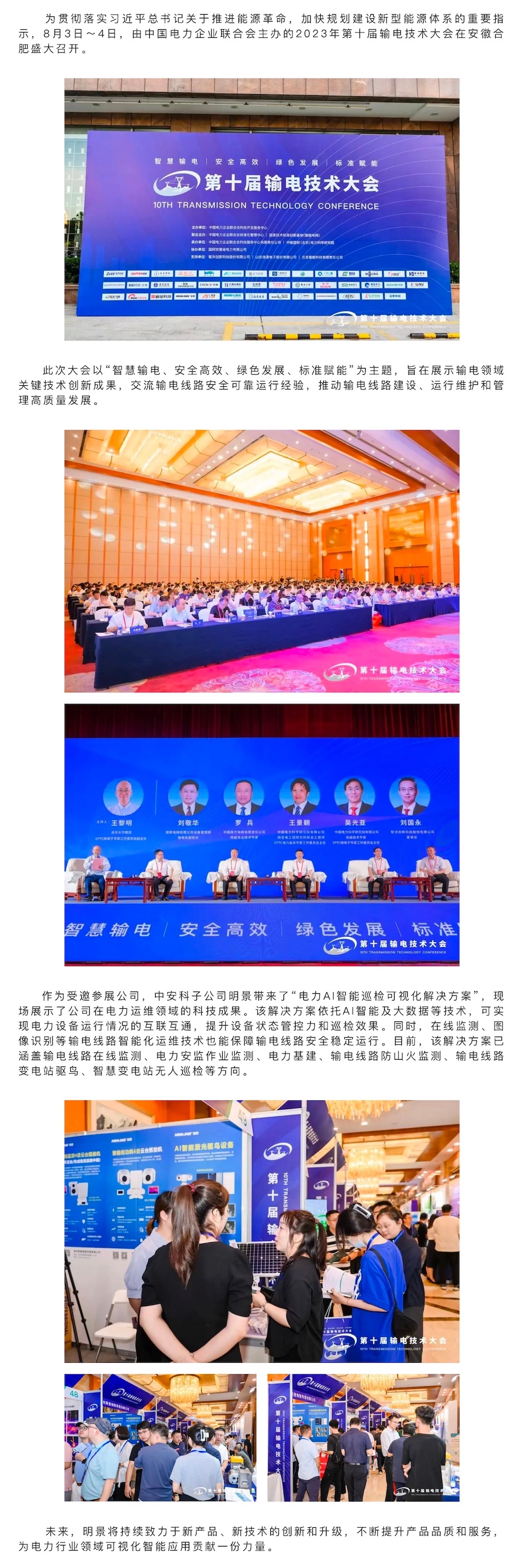 中安科子公司明景攜“電力AI智能可視化解決方案”亮相第十屆輸電技術(shù)大會(huì)