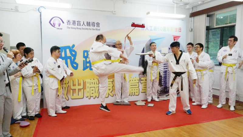 衛(wèi)安的運(yùn)營(yíng)經(jīng)理Jacky Leung為輔導(dǎo)會(huì)的孩子們進(jìn)行跆拳道培訓(xùn),并于60周年開(kāi)放日的開(kāi)幕儀式上進(jìn)行現(xiàn)場(chǎng)表演。開(kāi)幕儀式結(jié)束后,衛(wèi)安員工前往輔導(dǎo)會(huì)的工場(chǎng)參觀,現(xiàn)場(chǎng)觀看了紙盒、航班用耳筒、手提袋等物品制作,深入了解該機(jī)構(gòu)會(huì)員的工作。