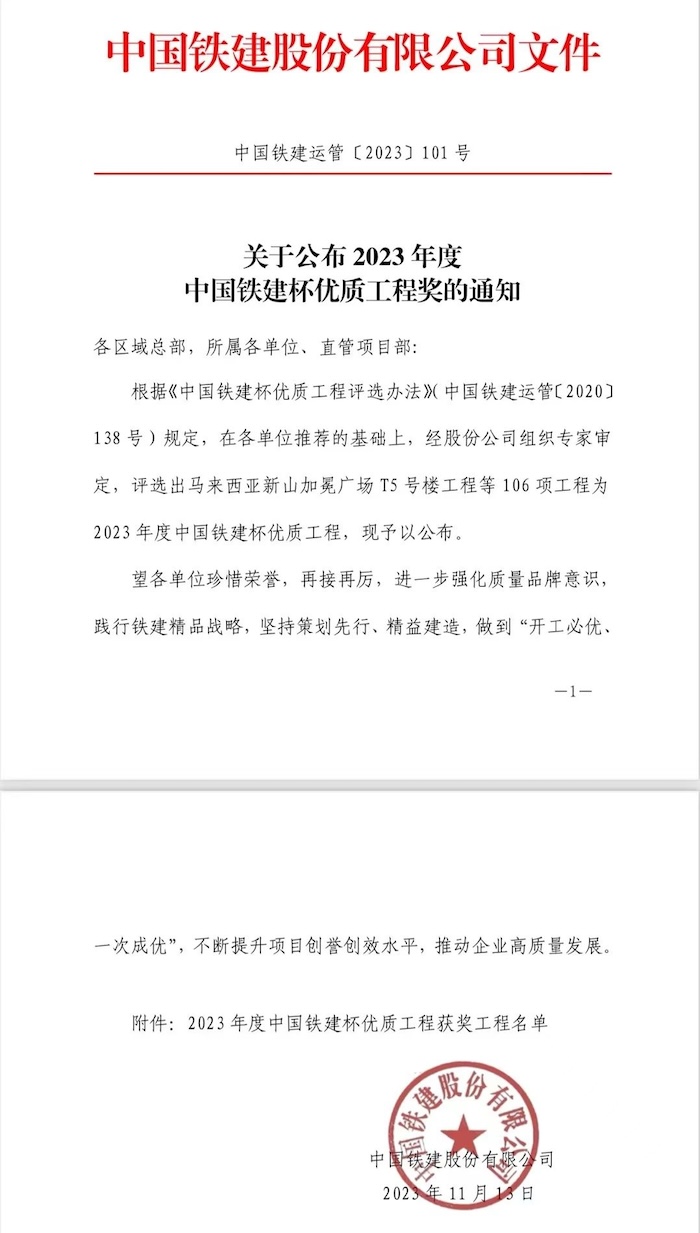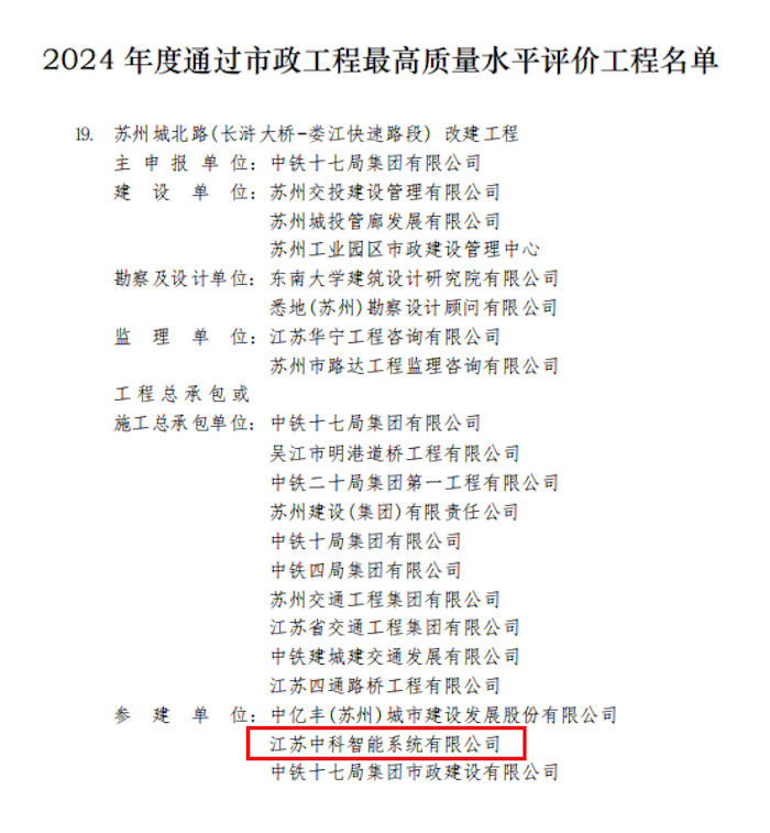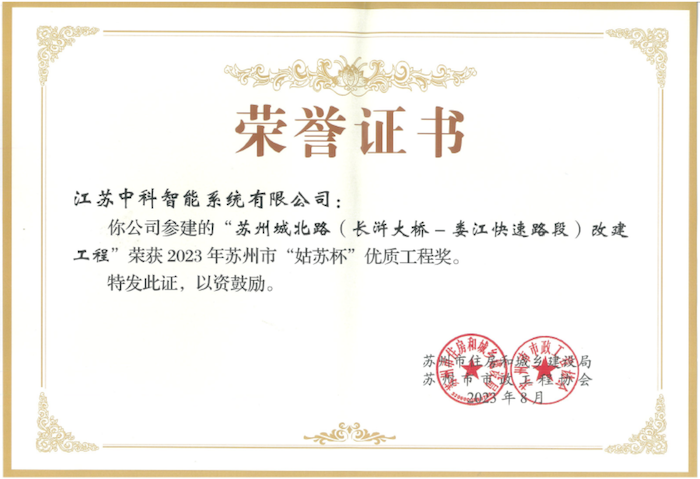 在項目建設(shè)過程中,中科智能始終堅持以“創(chuàng)建平安工地、鑄造精品工程”為目標,以質(zhì)量、安全為中心,嚴格按照施工組織方案實施,順利完成了各個系統(tǒng)的建設(shè)與交付。“市政工程最高質(zhì)量水平評價”是全國市政工程行業(yè)在工程質(zhì)量方面最高的評價獎項,代表市政工程行業(yè)同時期國內(nèi)先進水平。此次榮譽的取得,標志著中科智能在市政工程建設(shè)領(lǐng)域又一新收獲。同時,本項目先后榮獲過“姑蘇杯”、“鐵建杯”,體現(xiàn)了中科智能在施工管理、工程質(zhì)量、科技創(chuàng)新等方面均達到了全國市政建設(shè)行業(yè)一流水平。